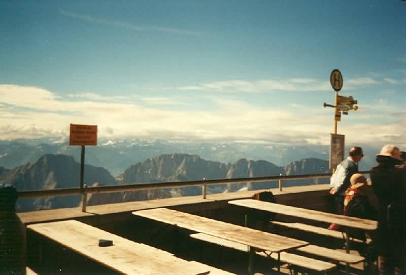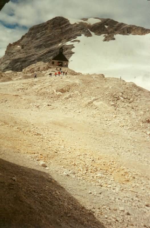 | Mit der Seilbahn sind wir zur Zugspitze gefahren. Dort war im August noch Schnee vorhanden. |
