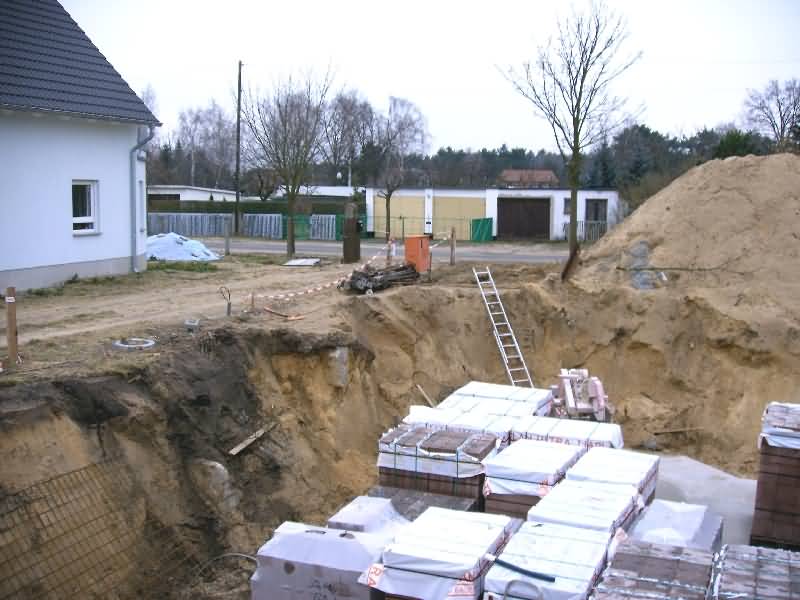 Am 13. Januar ist die Baugrube fertig ausgehoben und die Vorarbeiten für die Bodenplatte beginnen.
