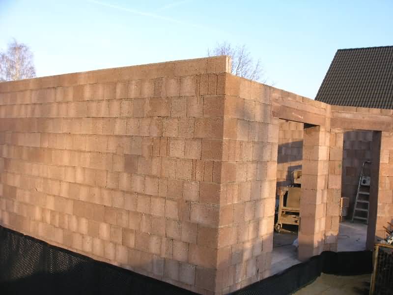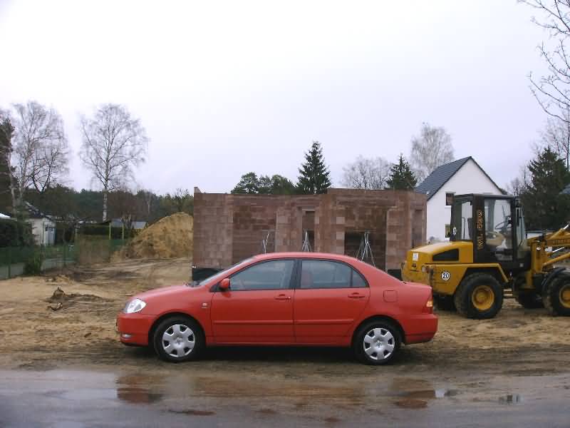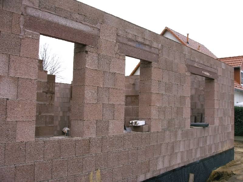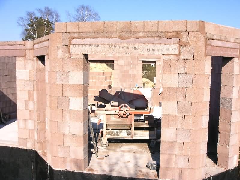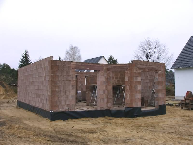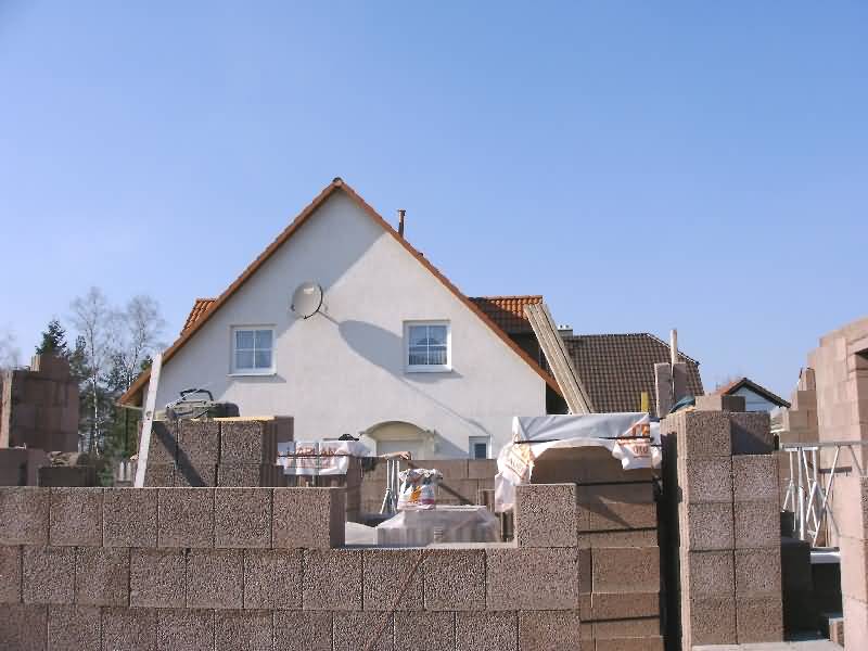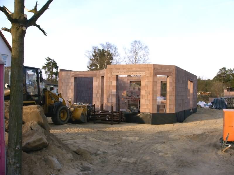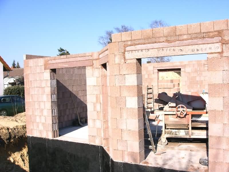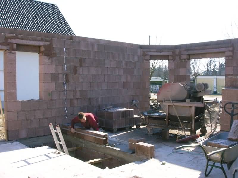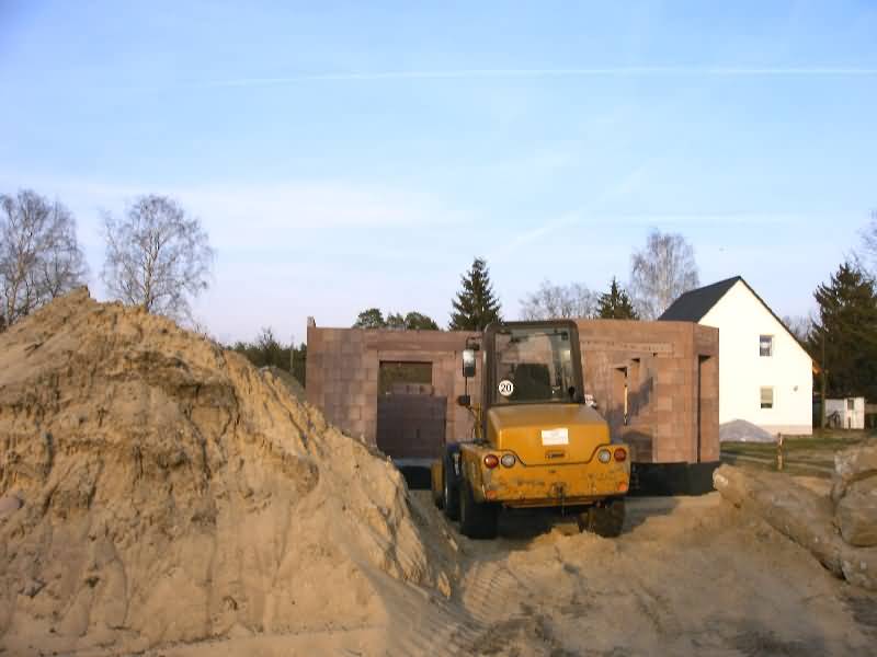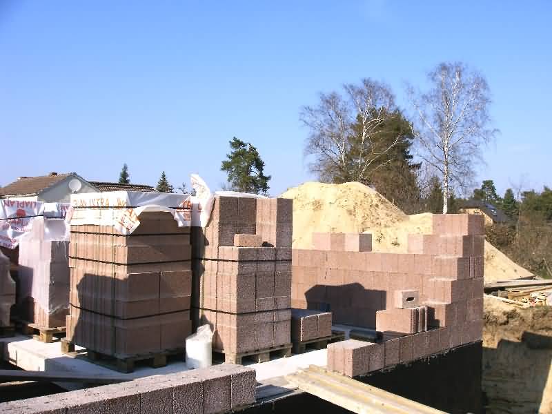 Nach Ostern, am 29. März, werden die Steine für das Erdgeschoß geliefert und es wird gleich angefangen zu mauern.