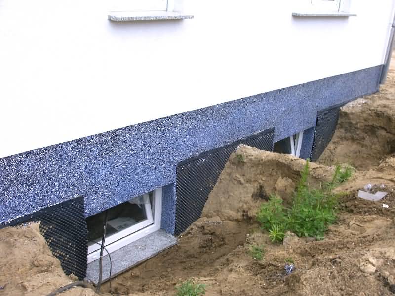 Der Außensockel an der Fassade erhält am Freitag seinen den endgültigen Putz, der zuerst blau-weiß